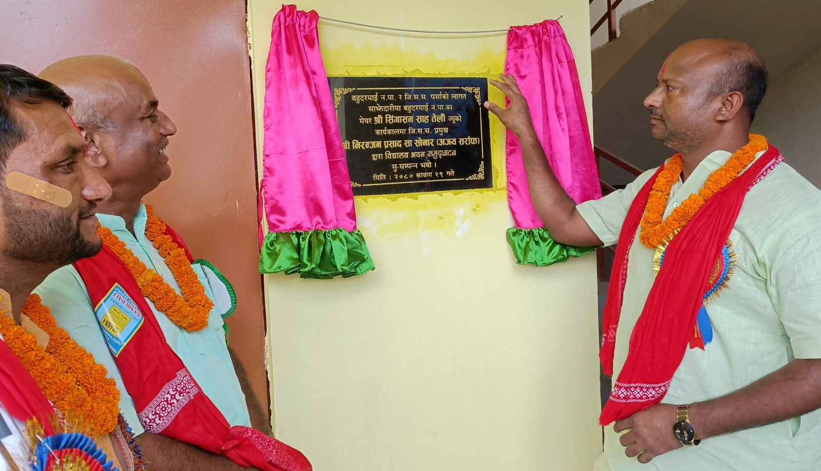 नगरपालिकाको वडा नम्बर ४ स्थित डकैला बहुअरीस्थित नेपाल राष्ट्रिय माध्यमिक विद्यालयको नवनिर्मित भवनको जिल्ला समन्वय समिति पर्साका सभापति निरञ्जन साह सोनार (अजय सर्राफ) ले उद्घाटन गरेका हुन् ।