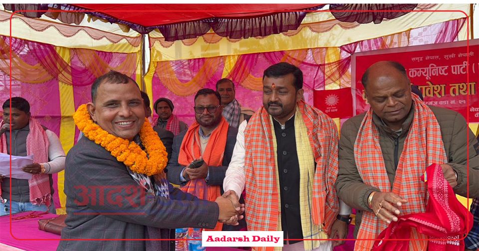 वीरगन्ज महानगरपालिका वडा नम्बर २१ परवानीपुरमा शनिबार आयोजित नेकपा एमालेको कार्यक्रममा वडाध्यक्ष रौनियार, वडा सदस्यहरु बच्चा महतो, कृष्णा दास लगायतका नेताकार्यकर्ताहरु एमालेमा प्रवेश गरेका हुन् । कार्यक्रममा उनिहरुलाई पर्सा–१ का एमाले उम्मेदवार प्रदीप यादवले अबीर टीका लगाएर पार्टीमा स्वागत गरे ।