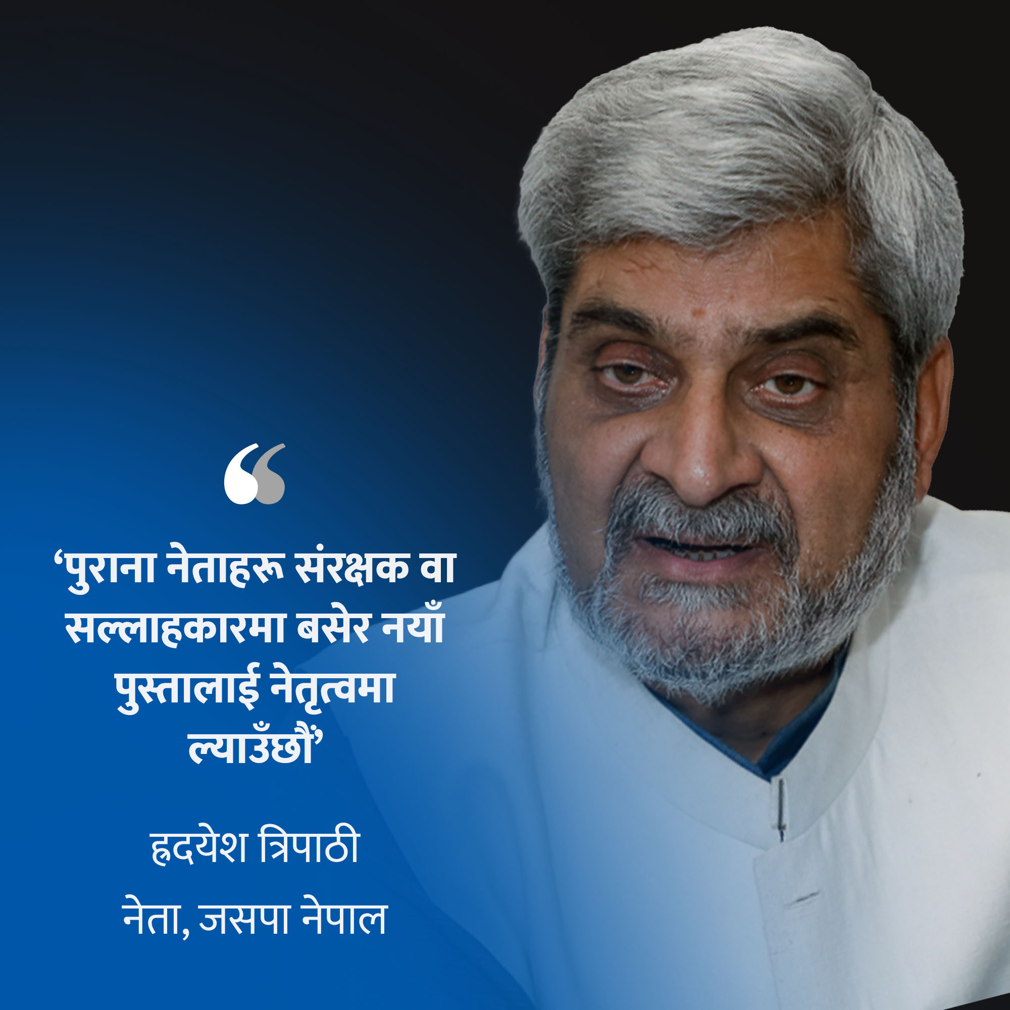 जनता समाजवादी पार्टी (जसपा) नेपालका नेता हृदयेश त्रिपाठीले मधेशवादी दलहरूबीच एकता आवश्यक भइसकेको भन्दै त्यसतर्फ छलफल भइरहेको जानकारी दिए। उनका अनुसार अब पुराना नेताहरू संरक्षक वा सल्लाहकारको भूमिकामा बसेर नयाँ पुस्तालाई नेतृत्व सुम्पने तयारी भइरहेको छ। तर, नेतृत्व कसले सम्हाल्ने भन्ने विषयमा भने अझै टुंगो लाग्न सकेको छैन।